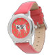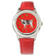 黒クールと白の牛とファンキー緑の数字のグラフィックデザインを持つ赤い時計。