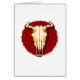 赤い背景の牛スカルのイラストレーションを方向を変えて下さい。 眺めに直面して下さい。
