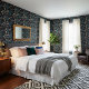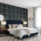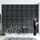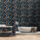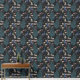 このエレガントピーコックとマグノリアの花はほぼ黒のChinoiserieスタイルパターンは、手で青色に描かれ、ティール(緑がかった色)のピーコックスはマグノリアの木の枝に開花でほぼ黒い背景にマグノリアの開花のシルエットとスタイリッシュに止まっている。