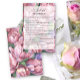 水彩ヴィンテージレトロスタイル!ピンクの牡丹の花テーマブライダルシャワーカードは、緑と花束牡丹の水彩イラストレーションを特徴とする。書道エレガントは、春、夏、秋の結婚式に最適。