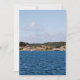 青い水と空と赤いコテージとボートとスウェーデンの海岸風景。フォトグラフィー.