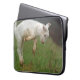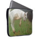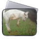 牧草地で跳んでいるおもしろいなヤギのベビーの白いヤギ ラップトップスリーブ