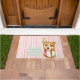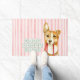 犬とピンクのストライプ ドアマット