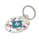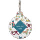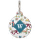 犬のパターンとヴィンテージ水色の花モノグラム ペット ネームタグ