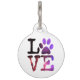 パウパーソナライズされたプリントと犬のラベル、アドレスと電話番号愛を言う紫色のかわいいパウのプリント。
