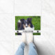 白い背景に2つの黒い犬の足のシルエットを特徴とするドアマットペット写真テンプレートデザイン。現在は「Welcome」と呼ばれるパーソナル化読可能な文字領域も存在する読が、例えば家族の名前に変更することができる。シェトランドシェプドッグのテンプレート犬の写真を自分の写真に変更して、このアイテムをパーソナライズする。