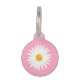 このペットタグには、デステイの漫画イラストで、美しい白と黄色のダイシーの花がピンクの背景に描かれています。反対側には、ペットの名前と飼い主の電話番号を入力できるテキストエリアがあります。