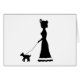 彼女の犬が付いている歩行のためにビクトリアンな女性の元の手描きのシルエットを特色にするカードとのユニークなノートか挨拶を送って下さい!
