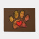 犬の足のプリントとハートのデジタル絵を描水色の。茶色カスタムのドアマット。ギフトアイディア愛犬家。