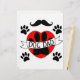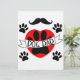 犬の足はリボンに文字と赤いハートで印刷する。オリジナルデザインと前足と口ひげギフトアイディア男性へ。