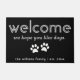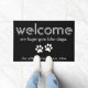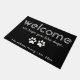 パーソナライズされた「モダンようこそ、犬が好きになればと思う」と白と黒のドアマット。