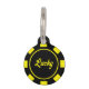 ラスベガスギャンブルトランプのポーカーチップマーカー犬と猫のためのペットラベル。動物パーソナライズされた用のペットラベル。自分のペット名と電話番号を追加する。おシンプル救済のペットを取り出す失った方法。小さく大きく利用可能。名前IDを持つ小さなラウンド賭博コインのトークン。カラーまたはリーシュ用キーチェーンリングの黒および黄色の色ラベル。例の名前; Lucky