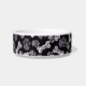 すべてに光沢がある足およびドッグビスケットが付いている黒い背景。 素晴らしい食糧または水皿を作って下さい。
