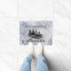 独自のウェルカムマウンテンロッジ、灰色の白いロックパターンを作成し、doormat独自の文字とイメージを追加。素晴らし夏の家、山の小屋の形式。