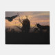 2匹の狼と飛んでいる、シルエットの風景と雲の夕日に照らされた烏。
