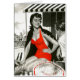 芸術家: プールで人に話している赤い水着の未知数|の女性