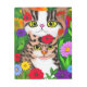 AIは赤お洒落、紫、青、緑のフォークアート猫や花を生み出した。