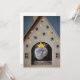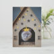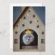 この空白のフラットグリーティングカードは、星の家から外を見ながら王冠を被っお洒落た真面目な猫の姿を表し飾ている。