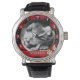 猫の写真、赤い素朴バッファローの格子柄、ベビーの子猫 腕時計