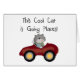"このクールな猫読む赤い車および文字の猫はです行く場所!"を 猫のデザインのTシャツ、マグ、カード、ステッカー、トートバック、キーホルダーおよび他のiems。