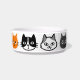 食クール物や水用の子猫丼。黒猫、三毛猫、グレーとオレンジの猫、タビー猫、シャム猫、白黒の猫など可愛い猫顔。漫画お洒落スタイルスケッチ。©ジェンイナシビリ