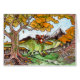 アヒル勘定書を出された恐竜の背部のオレンジ猫の乗馬の漫画場面は秋の森林を通って、ここにあります。 当然、これは丁度歴史的に正確ではないですが、だれが恐竜で乗りたいと思いませんか。