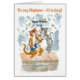 ギターとマラカスを伴クールう「ハッピーバースデー」を歌いながら、2匹の猫と10歳の甥のおもしろいバースデーカー色彩の鮮やかド、ジュディ・アダムソンの手イラストレーションから。内側のメッセージをもし変更できる。