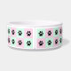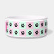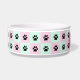 ピンクと緑のチェッカーボードを交互に使った猫の肉柄が特徴のパーソナライズされた、フラフキンスや、あなたの特別な猫が誰でも気に入る猫のフード・ボウル皿。猫最高のの名前を使って自分の好みに合わせる事が特徴だ。著作権Kathy Henis
