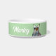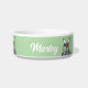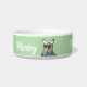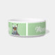 猫柄のシルエットが美しく、猫の写真を添えるキャットボウル。緑の背景が薄い。名カスタマイズ前を付けて
