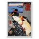 1797生まれ年(1797年)頃、シルク屋の息子で、元は義三郎と名乗った。彼はパター父のン・デザイナーとして事業を支援したようで、この経験がプリントの色柄やテキスタイルの豊かな使用に影響を与えたとの指摘もある。7、8歳の若さで浮世絵のプリントや職人や庶民の写真(職人マニュアルに描かれている)に感銘を受けたと言われ、後のプリントにも影響を与えた可能性がある。猫を抱え日本のた女性の素晴らしいプリント。美しいカラフルの着物。