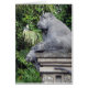バリ島のインドネシアの有名なヒンズー教の島に走行すれば、神聖な猿の森林に家であるUbudの町を訪問しなければなりません。 母によってずっと後につかれるマカク属猿の灰色の石造りのイメージは入口で、彼女の足のまわりで遊んでいて彼女の石造りのベビー猿がそして柱で彼女の下で柱頂上置かれます。 右下隅の柱の年少猿ショーの1つからの石造りの尾すぐ近くに。 緑は木およびシダの葉状体から、葉が多い背景成っています。 写真の版権ゲイルStorrs 2006年。