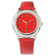 小さく小さい漫画猿は赤い背景で先頭に立ちます。 あなた自身のためのおもしろいおよびユニークな腕時計、またはあなたの生命の霊長目の買物をするその懸命。 元のデジタル漫画の芸術。