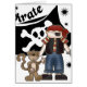 猿を持つ男の子の海賊およびどくろ印は印を付け、"海賊"を読む文字は海賊テーマのTシャツ、カード、mousepads、マグ、ステッカーで、およびもっと特色になります!