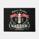 男性の洞窟、ドカスタムアの入り口ファッションド、または理髪店用に、独自のの古い理髪店ドアマットを作成します。はさみとかみそりのスタイリストのツールが特徴。レトロスタイルの理髪店のポール。赤、白、青の色。理容師、スタイリスト、バーバーショップの四重奏歌手に最適。