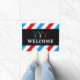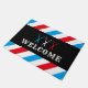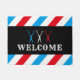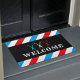 理容師バーバーショップブルーレッドストライプ歓迎 ドアマット