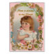 ピンクのリボンが付いている花フレームの身に着けている白い服の甘いヴィンテージの女の子。彼女はかわいくていい彼女はお母さんの方の彼女の愛を表現しています。
