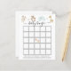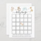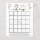 水の色のおもちゃを備えたベビーシャワーヴィンテージビンゴカード。おもしろいでシャワーを浴びながらプレゼントを開く方法。