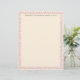 甘くて優美な小さなピンクの花々が、この羊皮紙の色のレターヘッドのすべての側面を歩く。非常フェミニンにヴィンテージに見える背面は正面と同じパーチメント色で、文字もない。