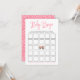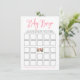 ピンク色のグレーと白い猫がピンク色の花の冠を中心にビンゴスポットを着お洒落て、ピンクのスクリプトの上部に「ベビービンゴ」をフィーチャーした可愛い赤ちゃんシャワービンゴゲームカード。お母さんとパーソナライズの名前と下に沿って赤ちゃんシャワー日付。このデザインはSweet Waterカラー子猫コレクションとコーディネート。