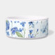 青い背景に優王室のしい「ディジ淡い色の」青い花与えを、このペットボウルのような甘い見た目フェミニン。青い文字でペット名でパーソナライズするためのパネルがある。