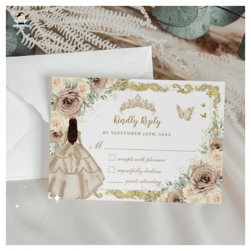 甘い16シャンパンブラウンフローラ蝶の写真 招待状
