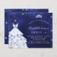 甘モダンい16スタイリッシュ、16歳の誕生日パーティーへの魅力的な招待。グリッターの塵、ティアラフェイクとドレスと真夜中の青い背景。青い色が不均一だ。名前は手書文字のスタイルスモダンクリプト付き。カスタマイズしてパーティー詳細を追加する。