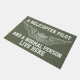 あなたの家への歓迎される客への生意気な方法は、この飛行スーツの緑の玄関マット読む白い軍隊のパイロットの翼のグラフィックおよびカスタムの文字、Aのヘリコプターのパイロットおよび生きている正常な人ここに特色にします。 "カスタマイズそれを"さらに個人専有化の選択のためのボタン使用して下さい!