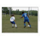 大きいサッカーの女の子、勇気付けられるに対して上がっている小さいサッカーの女の子