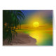 ビーチ、ヤシの木および落日との暖かい熱帯島場面