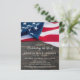 アメリカ国旗の命の招待状の記念お祝い。この愛国的な人生のお祝いは、暗黒の木の背景にアメリカ合衆国国旗を特徴としている。愛する人の名前と日付、イベントの場所、および背面の任意の追加の情報と人生の招待のこのアメリカ国旗のお祝いをパーソナライズする。このアメリカ国旗の葬儀の招待は大切な記念品になるだろう。軍隊の葬儀や退役軍人の追悼式や人生の軍隊お祝いに最適。愛する記憶の軍隊メモリアルアメリカ国旗。COPYRIGHT © 2020 Judy Burrows, Black Dog Art - All Rights Reserved.生活の予算お祝い愛国米国国旗の招待