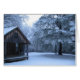 新しい雪を見落とす夜明けの直後の田園アーカンソーの小屋。