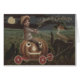 男の子が微笑むハロウィーンのカボチャのちょうちんワゴン黒猫