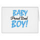 世界にそれを発表したいと思う男の赤ちゃんの誇り高いパパはこれらの青および黒く文字デザインで誇りを持ったなパパのTシャツ、ボタン、マグ、バッグ、ステッカー、カード、および多くを愛します!
