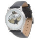 男性用クラウンプロテクター黒革ストラップ時計 腕時計